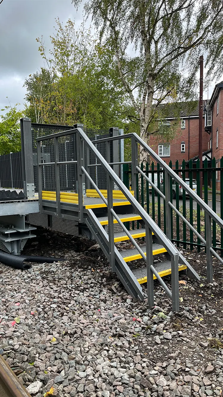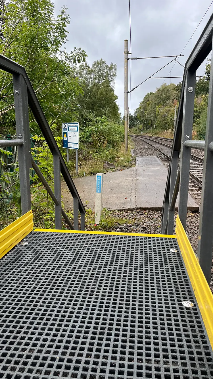 The lightweight yet high-stiffness GRP profiles provided a corrosion-resistant alternative to steel, perfectly suited to the exposed rail environment. Pre-engineered components enabled rapid assembly and precise fit-up on site, while the anti-slip finish ensured long-term safety for operational staff and passengers alike.
