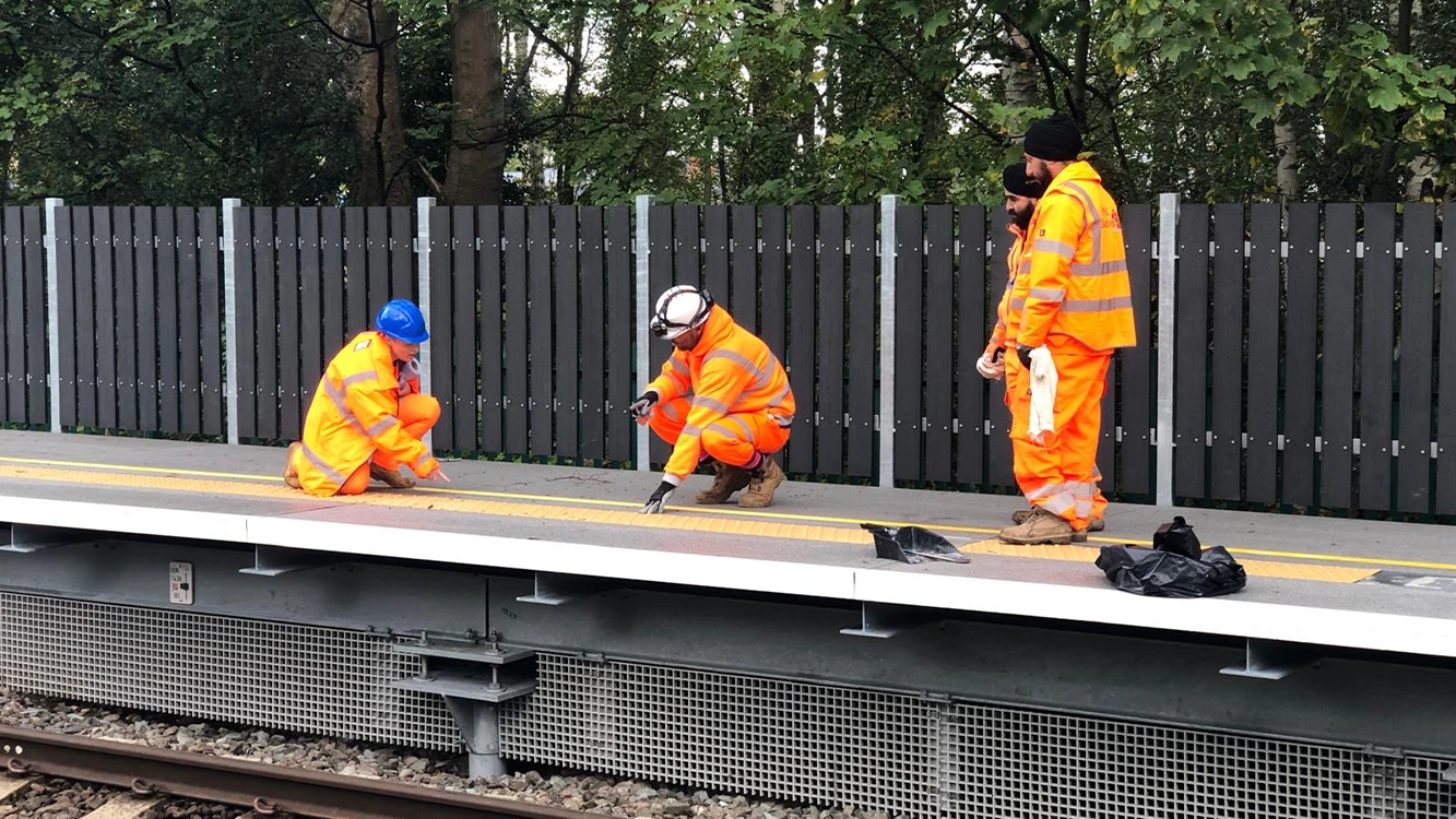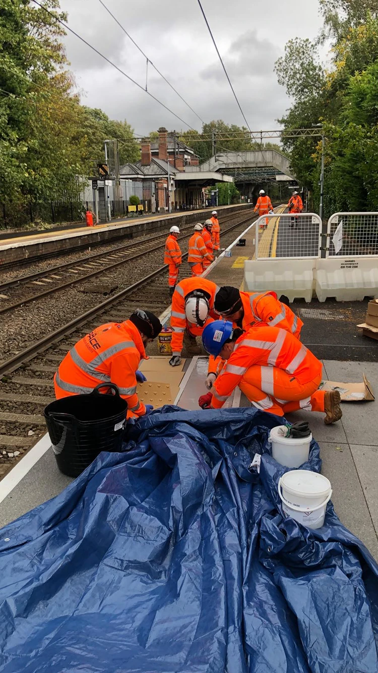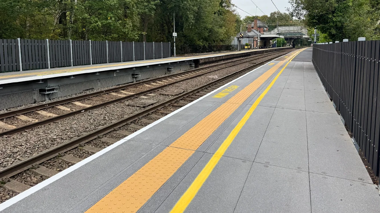 The modular design allowed the new platform extensions to be installed rapidly and safely without the need for heavy lifting equipment, reducing both site risk and possession time. The Tri-Tone Grit surface, tested to BS 7976-2:2002 + A1:2013, retained over 97% of its slip resistance after 1.1 million footfalls, ensuring long-term safety and performance for passengers in all weather conditions.